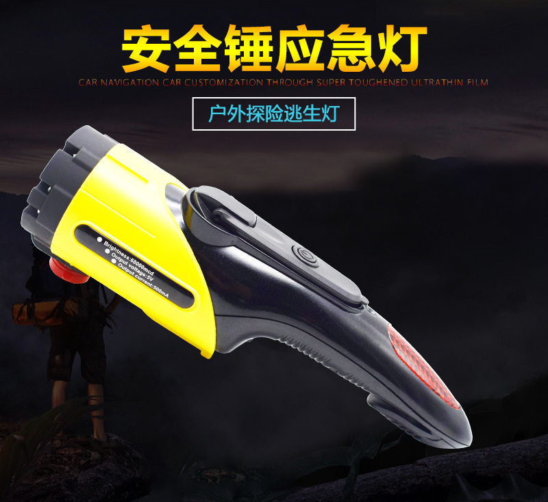 Four-in-one hand cranked power generation mobile phone charger flashlight safety hammer Cutter warning light emergency hammer