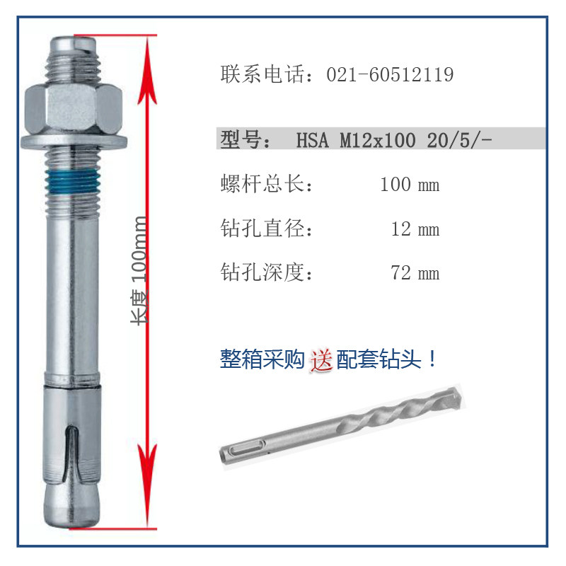 Hilti expansion bolt HSABW HSVM8 12 16 20 car repair gecko Schindler elevator metal anchor bolt