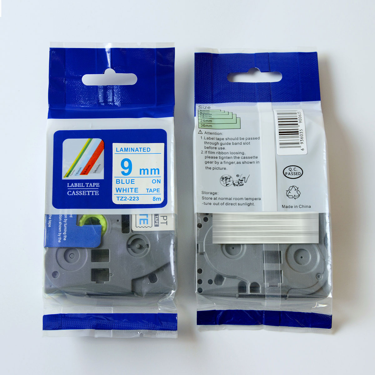 Brother Mark Sign Machine Ribbon TZe-223 TZe-223 TZ-223 Label Ribbon 9mm White Bottom Blue Word Label With Label Paper