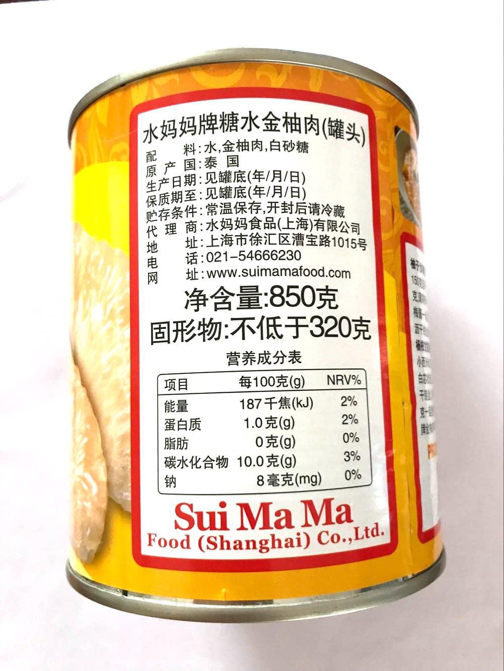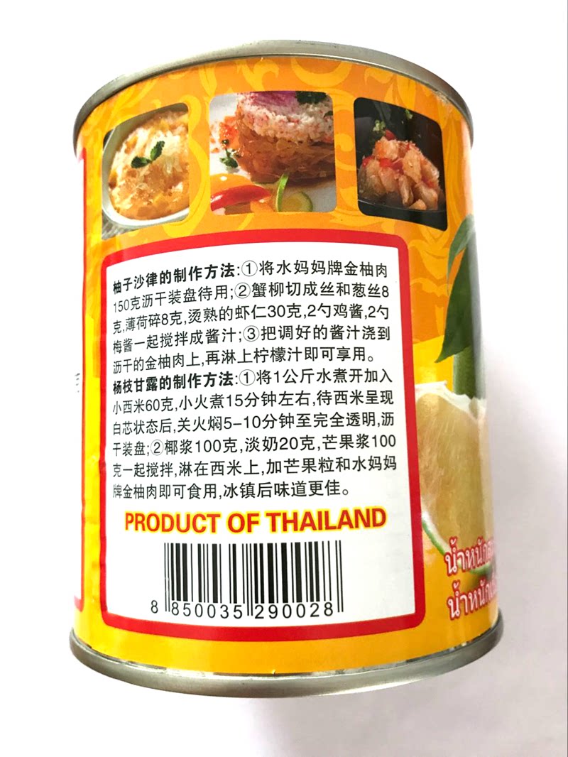 Sweet raw material water moms sugar water gold grapefruit Thailand imports 850g poplar manna 1 jar