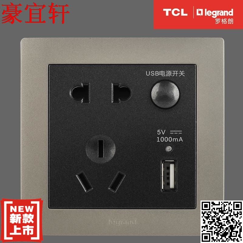 TCL Roglang satin shagger gold with switch USB five-hole mobile phone charging socket USB 23 plug 86 type