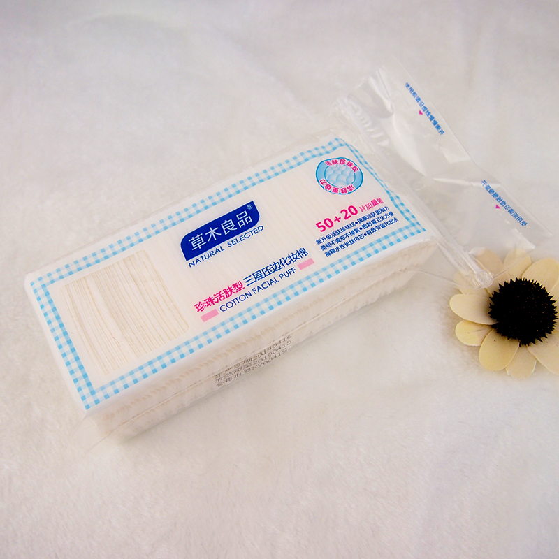 Grass Wood Benign Pint Pearl Live Skin Type Three Laminated Side Makeup Cotton 70 Pieces of Makeup Cotton Beauty Makeup Tools