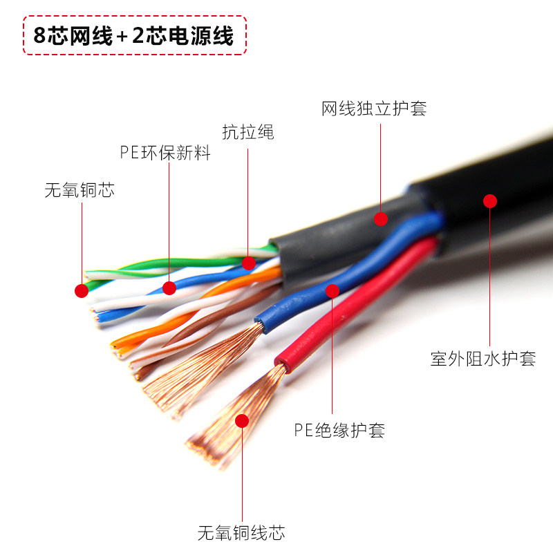 Outdoor grid cable with power core 4 core 8 core wire power supply integrated integrated wire network monitoring composite line