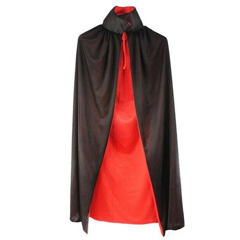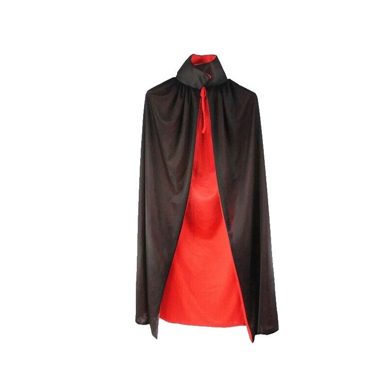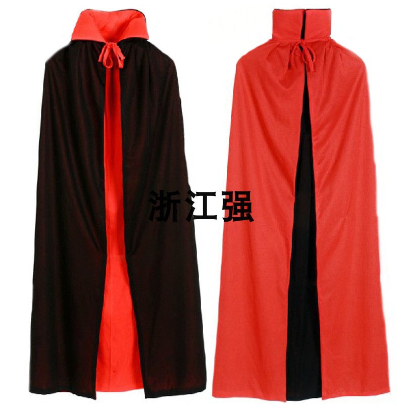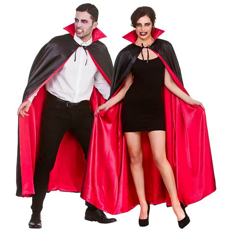 Halloween Black Red Double-deck Cloister Adults Children Stage Performance Bifacial Cloak Children Pumpkin Horn Cloak