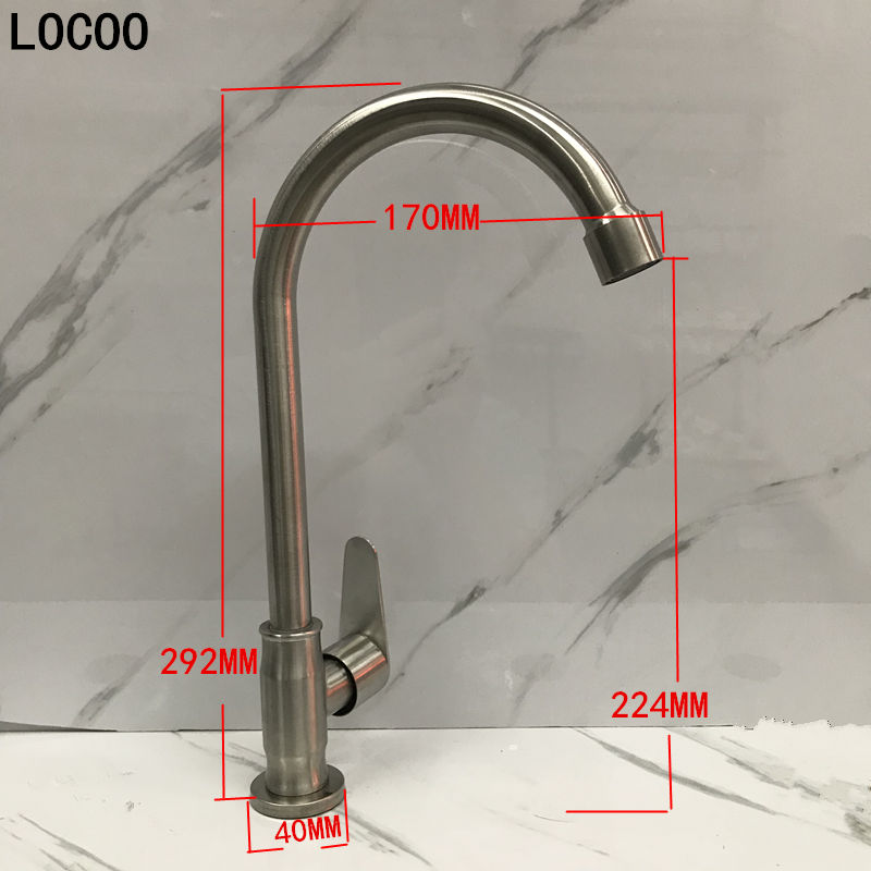 Le cheng genuine 304 stainless steel kitchen faucet dish basin single cold household 4 faucet brushed ball swing faucet