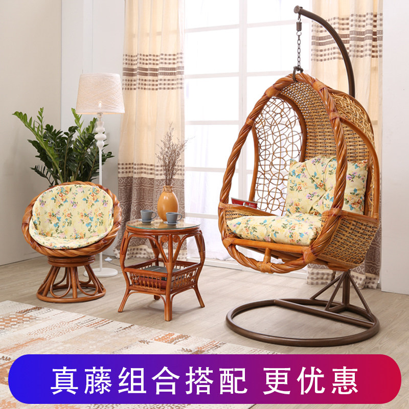 Swing chair Balcony cradle chair Household real rattan basket chair Indoor rattan chair Single bird's nest rocking chair Hanging bed