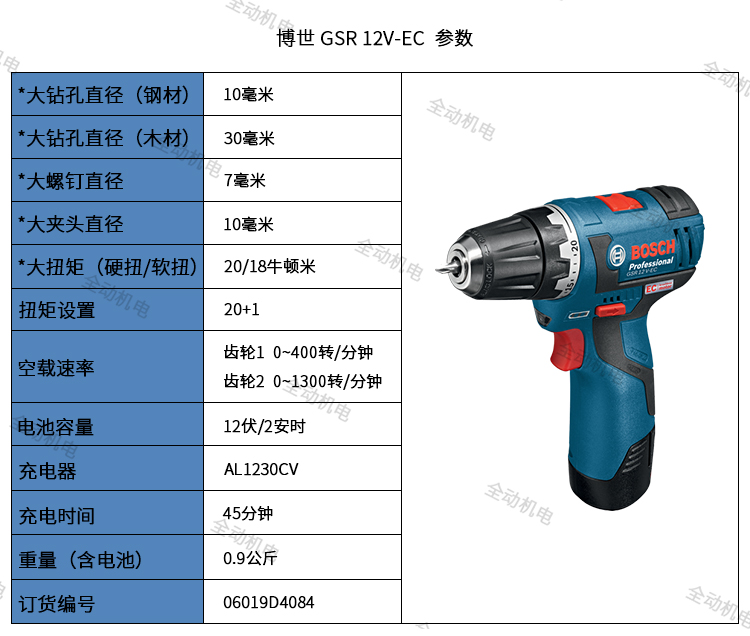 Germany Bosch GSR12V-EC Charging Screwser 12V 2 5Ah Brushless Batch Charging Drill