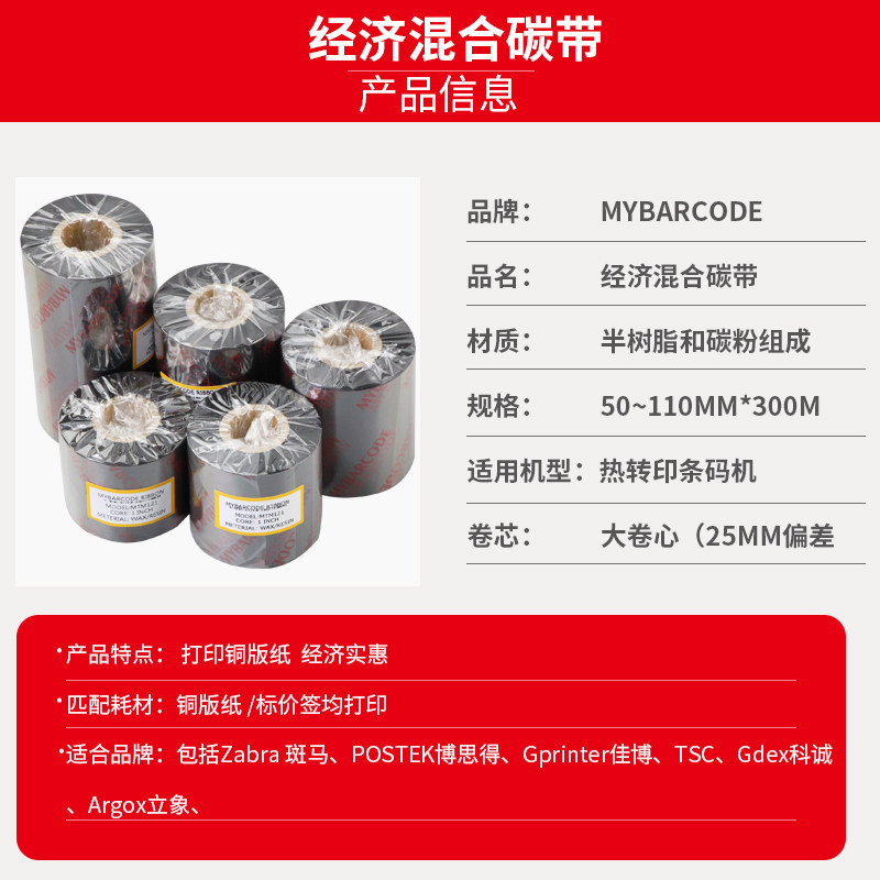 Carbon band 90 * 300 Economy-type hybrid base adhesive barcode Column printing machine Carbon with ribbon label Special carbon ribbon