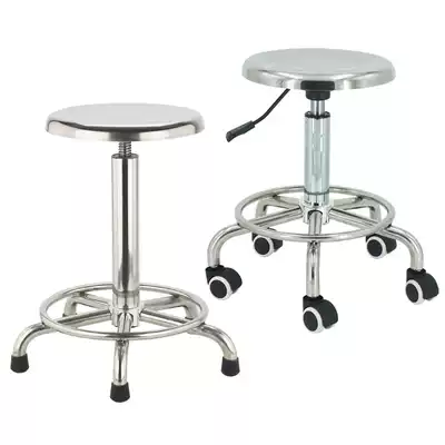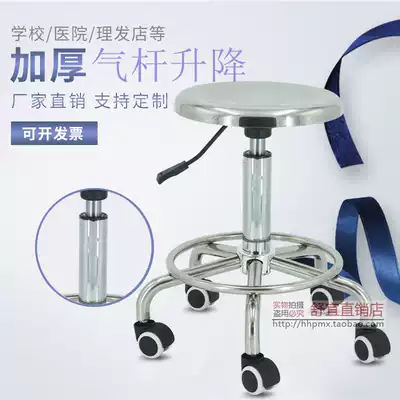 Thickened spiral stainless steel stool Pneumatic lifting five-legged five-wheeled stool chair Office stool Stainless steel round stool experimental stool