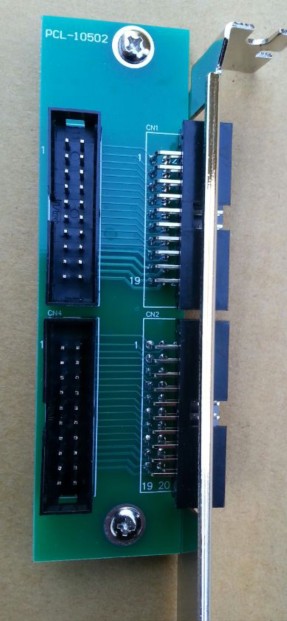 The new Advantech PCL-10502 expander, a dual 20P extension cable attached to a computer slot board