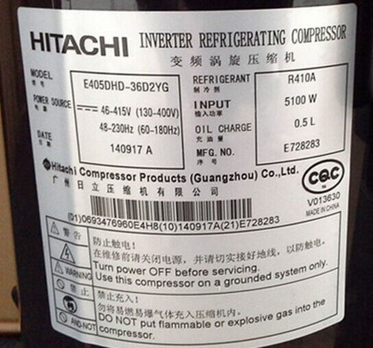 E405DHD-36D2YG E405DHD-36D2YG E405DHD-38D2YG brand new original installation Hitachi 5 Direct Current Frequency Conversion Compressors