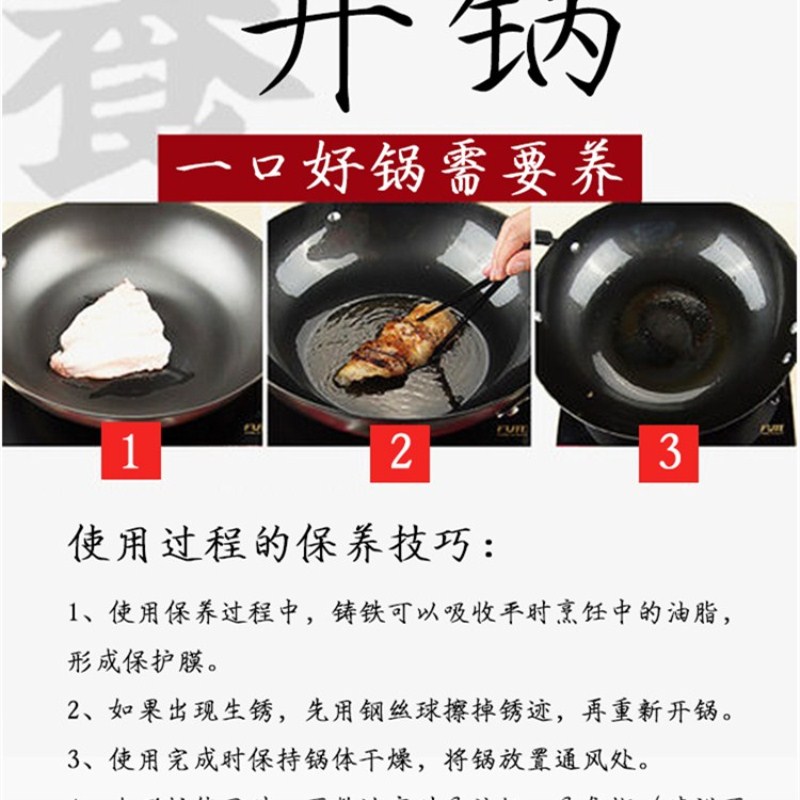 Supohl frying pan without coating iron pan Home raw iron frying pan 30CM induction cookers Gas generic FC30E2