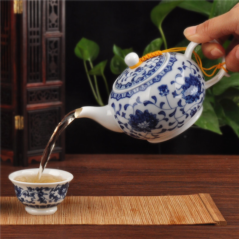 Ceramic Bubble teapot Jingdezhen Qinghua Porcelain Glaze with Colored Bone China Kung Fu Small Number Single Pot with filter Kong Tangle Branches Lotus