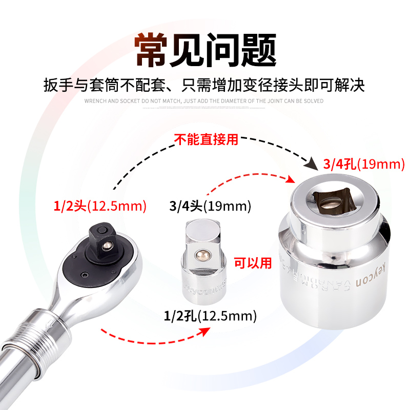 Variable square socket wrench adapter quick wrench Variable diameter turn 3 4 change 1 2 large fly change 3 8 medium change small 1 4