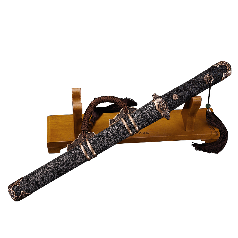 Fish Leather Handle Purple Sandalwood Sheath Fish Leather Sheath Fish Skin Handle Purple Sandalwood With Wood Burning Blade Fish Leather Handle Fish Leather Handle Fish Leather Sheath Ancient Farin Burning Blade Luxury Version Little Tang Sword White Fish Leather Handle Purple Sandalwood