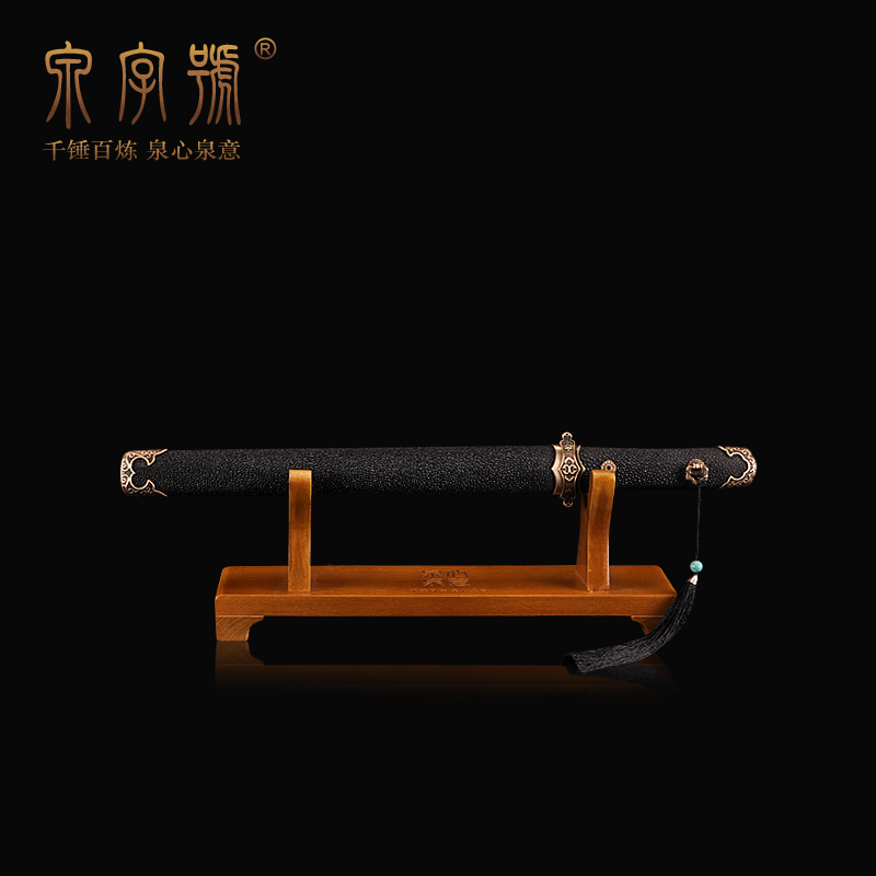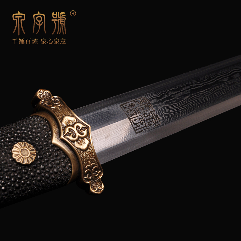Longquan City Quancalligraphy Sword Fish Leather Handle Octafacial Small Don Sword Flower Pattern Steel Integrated Knife Sword Han Sword Short Sword Unopened Blade