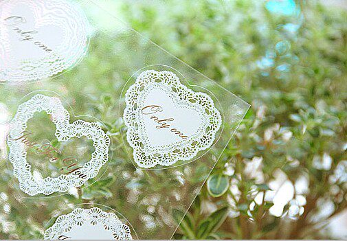 White Lace Printed Transparent Sticker Loving Round Bow Tie Seal Elements Applid to Decorative Sticker
