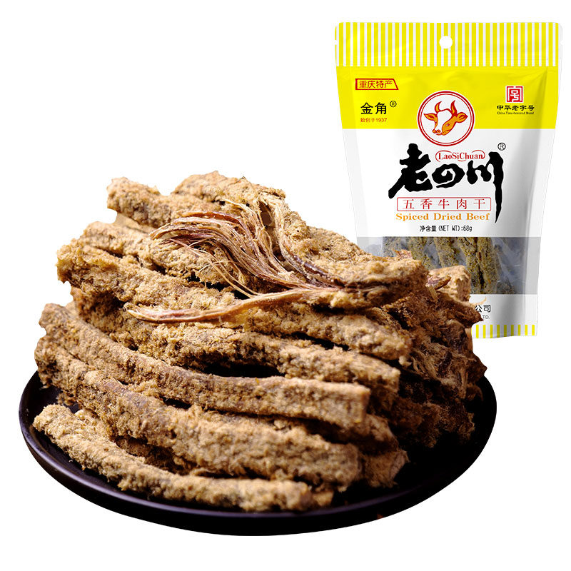 (Sichuan spiced beef jerky 68g*2 bags) Golden horn Chongqing specialty beef strips delicious snacks snacks