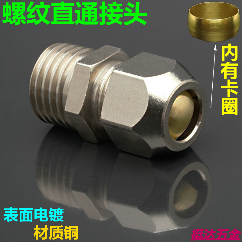 Copper nickel-plated ferrule direct straight-through terminal copper pipe connector 1 2 3 4 points card 4 6 8 10 12 16 mm