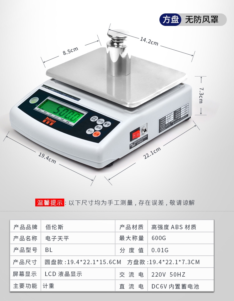 Range 300g Precision 0.01g Disk (with windshield) Range 600g Precision 0.01g Disc (with windshield) Range 1000g Precision 0.1g Square disk (without