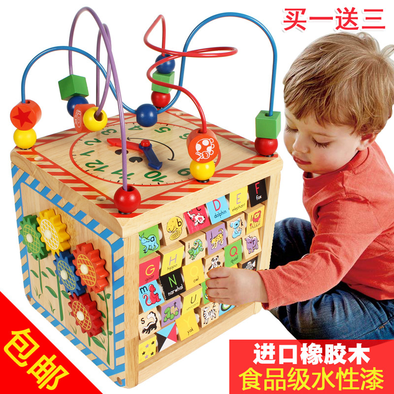 Children's Toys Big Wrap around Pearl Pepperbox 1-3-year-old Puzzle String Beads Wooden Multifunctional Tetrahedron Gift