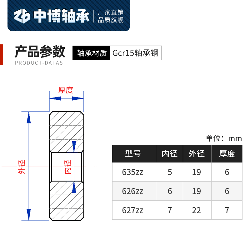 Boutique 625 635 627ZZ bearing inner and outer ring wall thickening 7 steel balls low noise high precision