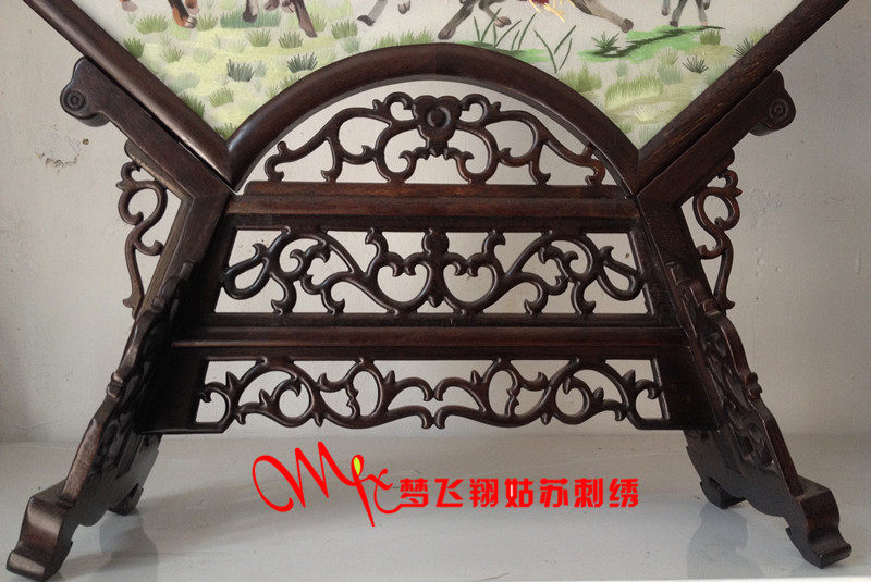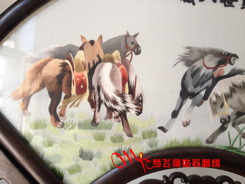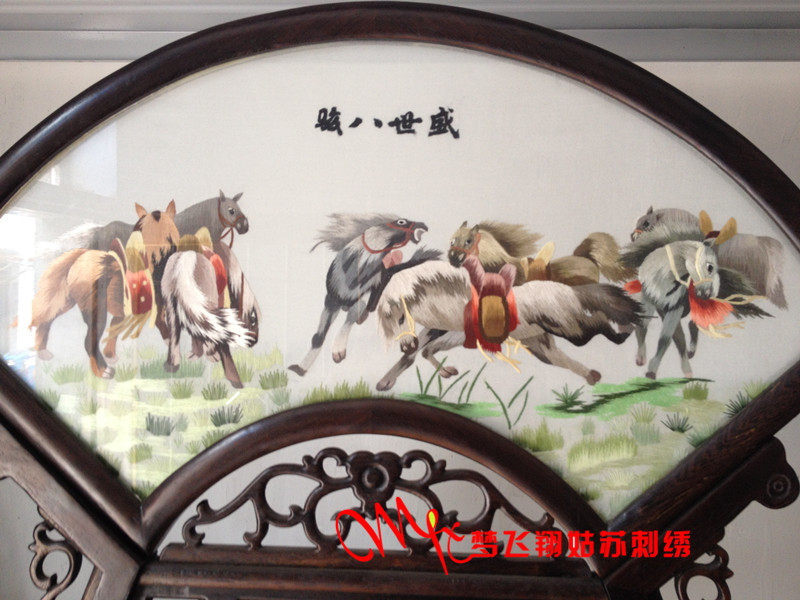 Embroidery Suzhou embroidery handmade boutique fan forming product double-sided embroidery ornaments eight horses in the prosperous age to successful embroidery