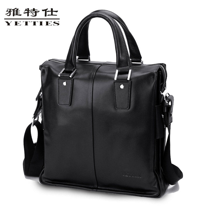 Men Genuine Leather Business Handbag Headlining Cow Leather Briefcase Vertical large capacity Single-shoulder inclined satchel bag Tide Cards