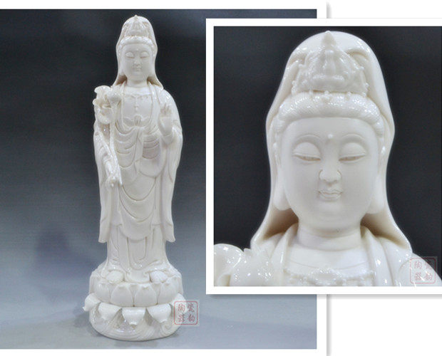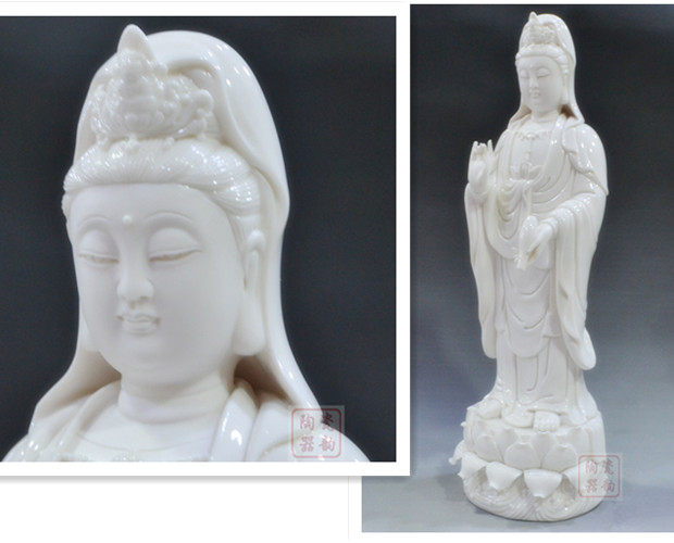 White Porcelain Standing Lotus-Guanyin BodhisattBodhisattBodhisattva Buddha's home dedicated to the pendulum Dehua Ceramics Western Triholy Craft Gift Pendulum