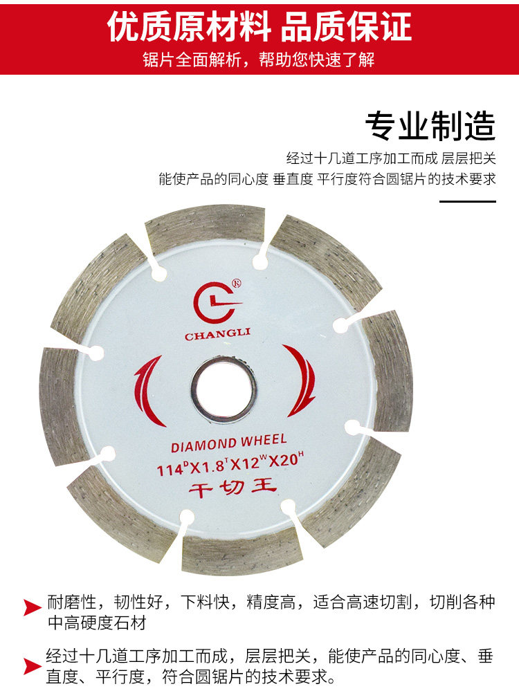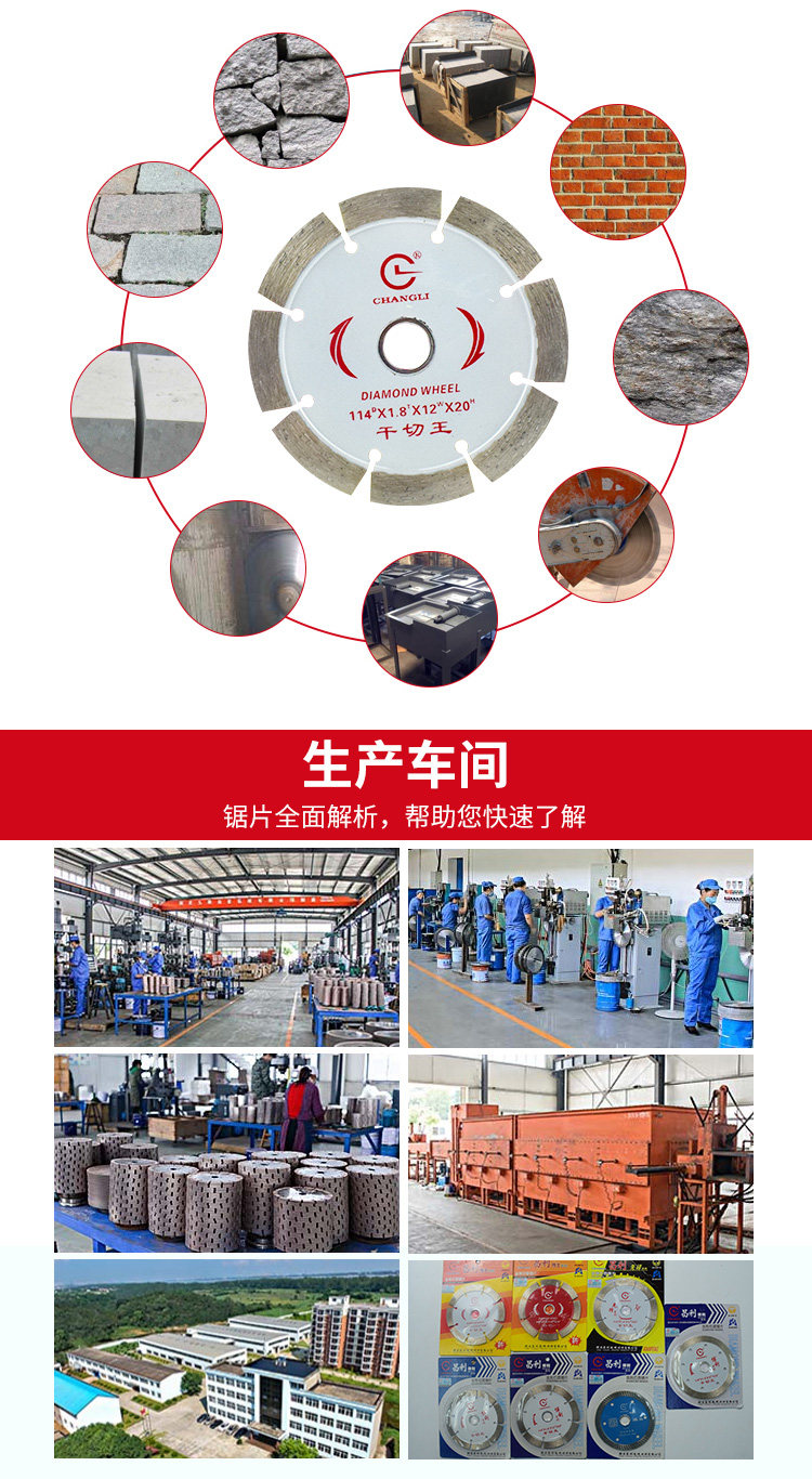 Dr. Red 114 Dr. White 114 Boli 114 Open Boli 114 Non-opening circular saw blade Boli 110 White Pioneer 114 Special piece for vitrified brick Boli 190 Boli 230