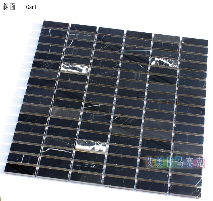 Natural marble mosaic manufacturer direct selling black - solid white line waist - line surface wall mosaic