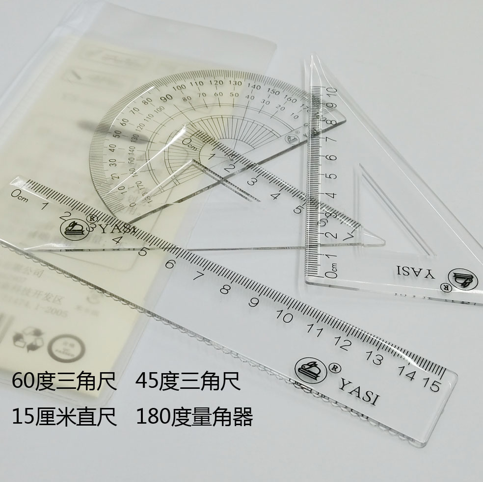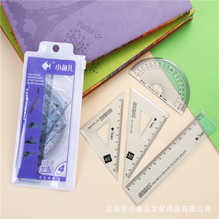 Triangle Pack Sleeve Primary School Student Specialized Four Piece Transparent Plastic Examination Drawing Measurement Multi-Functional Triangle Scale