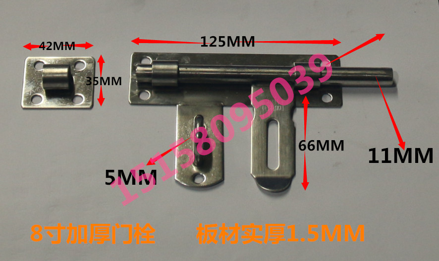 4 inch-20 inch door stainless steel anti-theft bolt metal door bolt door bolt padlock left and right bolt with lock bolt