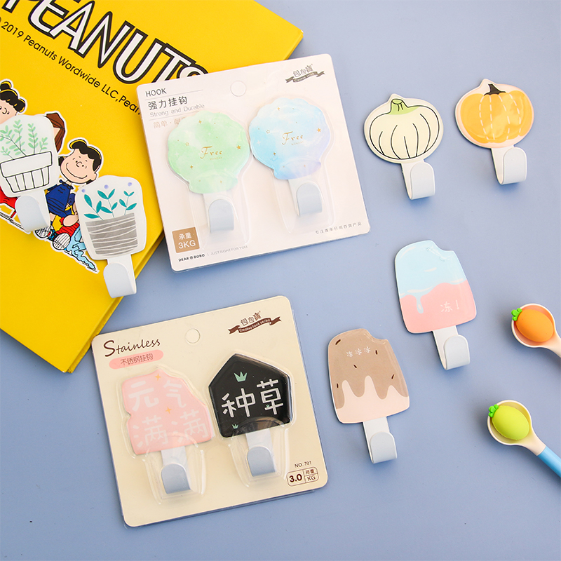 Cute cartoon stainless steel hook strong seamless decorative hook door wall hanging adhesive hanging hook HA164
