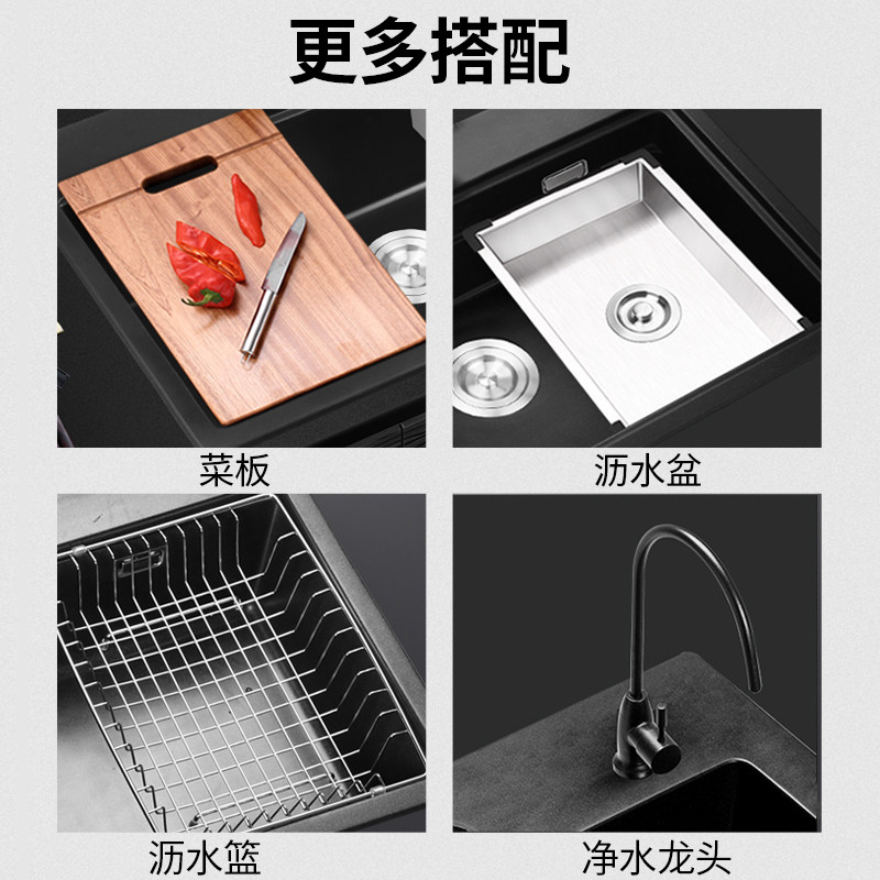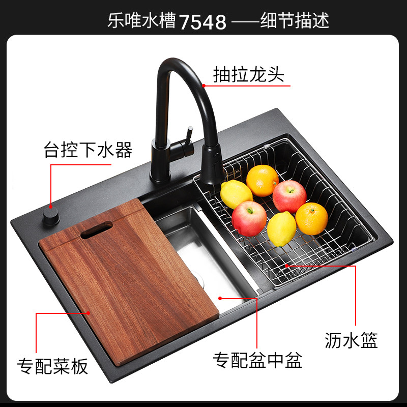 A PEARL BLACK PACKAGE 1 (size 650 * 485) L6548 A pearl black package 2 L6548 F5 black basin middle basin cutting board drain basket A pearl black
