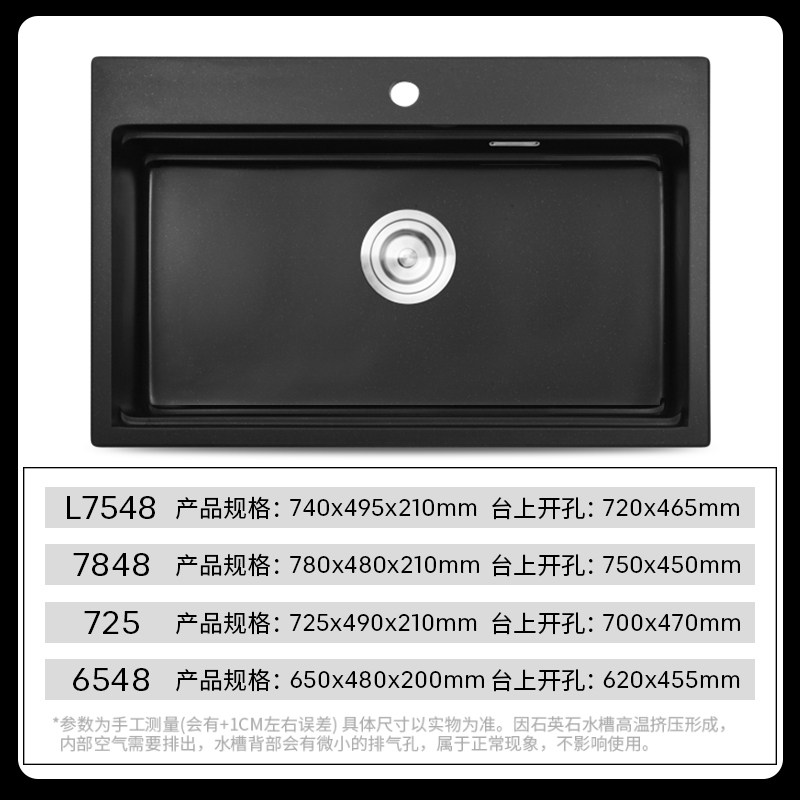 Lemery Kitchen Quartz Stone Granite Sink Wash Vegetable Basin Dishwashing Basin Thickened Large Single Sink Kitchen Basin Package 7548