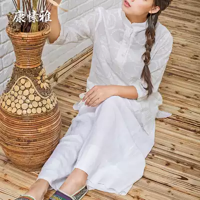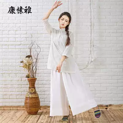 Kang Suya meditation clothes women's summer pure cotton yoga clothes suit white zen clothes Chinese style meditation lay clothes women's loose