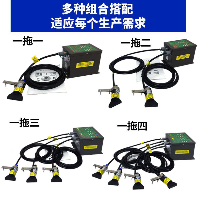 Single ion air nozzle 1 ion air nozzle with 1 set of one-to-two power supply 2 ion air nozzles with 1 set of one-to-two power supply 3 ion air nozzles with 1 set of one-to-four power supply 4 ion air nozzles with 1 set of one Tow four