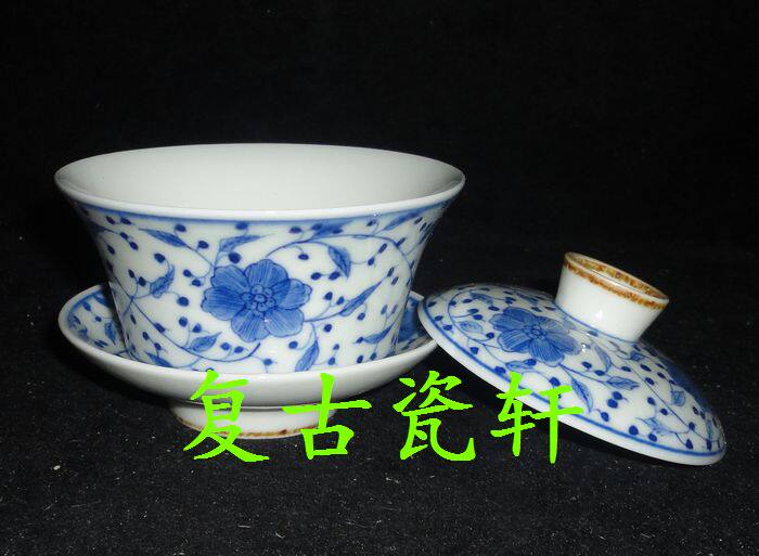 Jingdezhen Cultural Revolution Factory goods Porcelain Hand-painted Green Flowers Sichuan Branches Lotus Grand three only cover Bowl Horseshoe Cover Cup Tea Cup