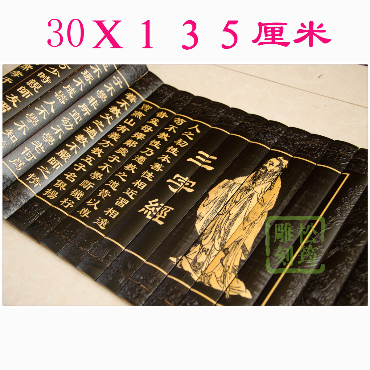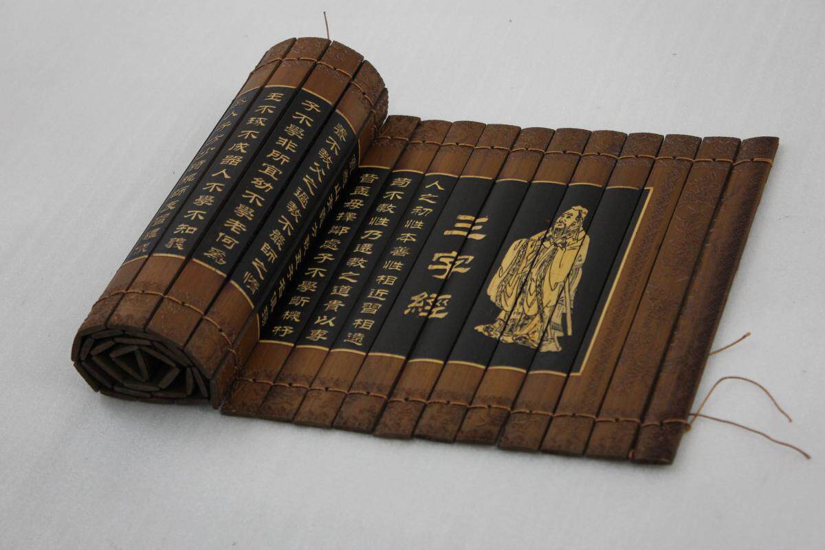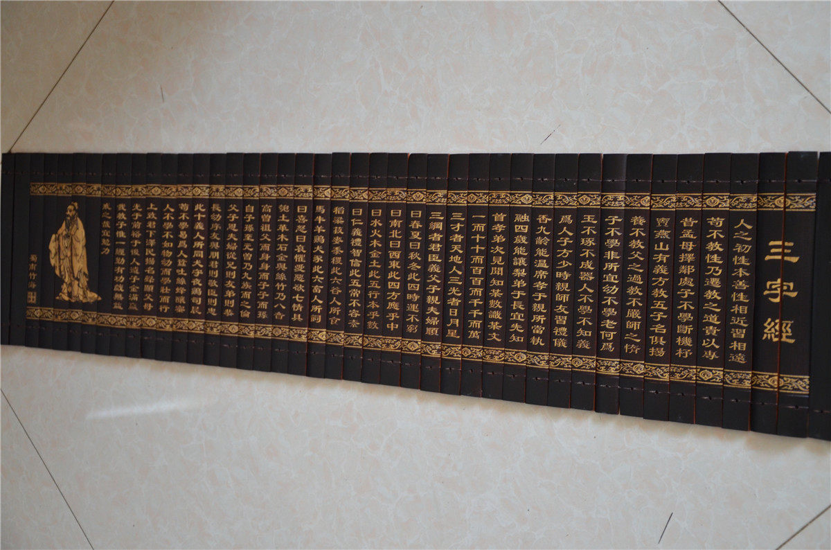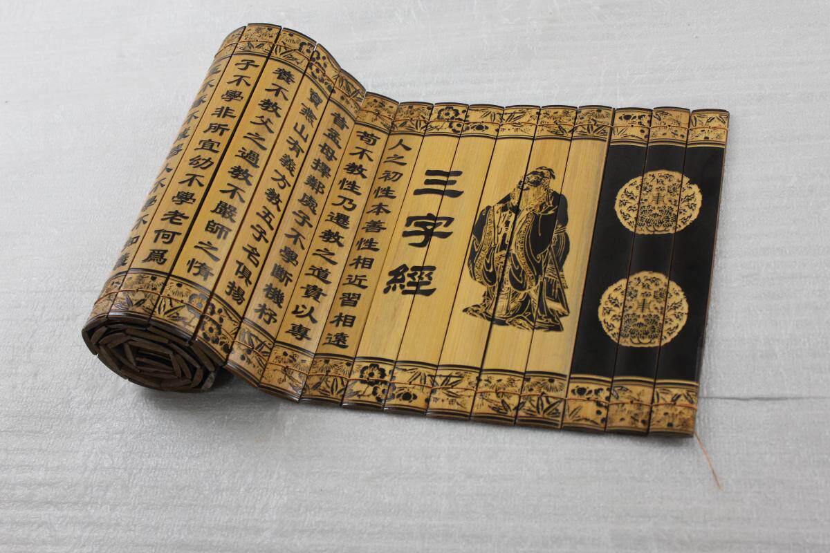 Bamboo-compiled complete version Three words warp Bamboo Chien relief school hanging painting Chinese style culture education Classroom Book room engraving frescoes