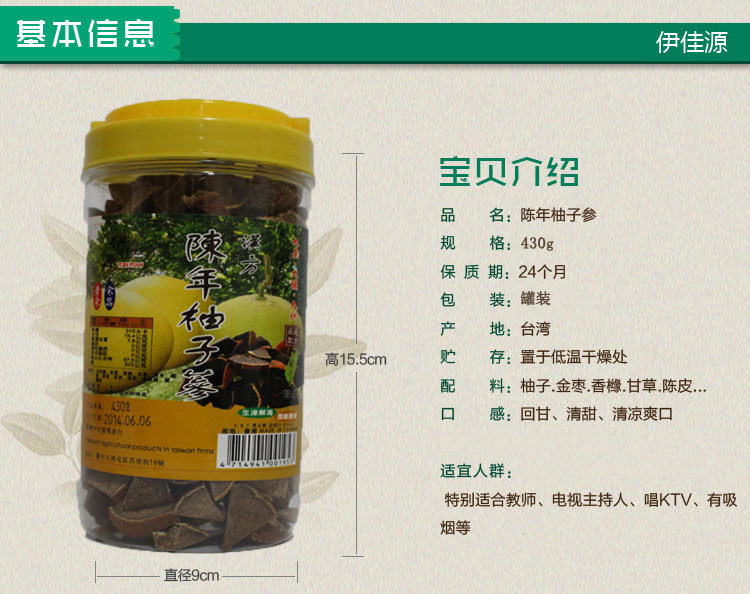 Taiwan imported white grapefruit ginseng Aged grapefruit ginseng Eight immortals fruit nourish the voice and protect the throat 430g