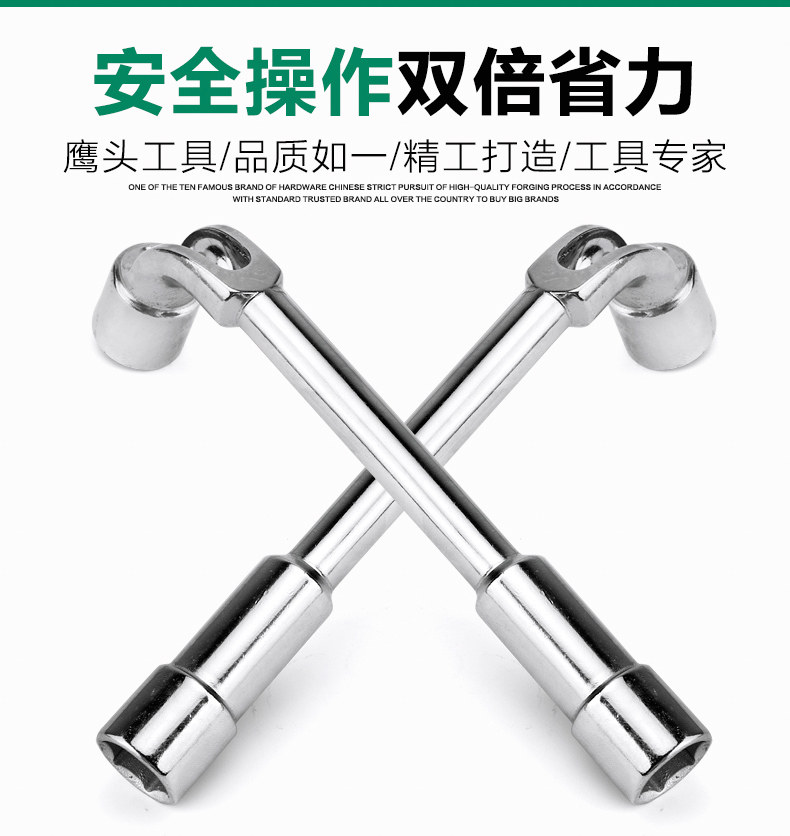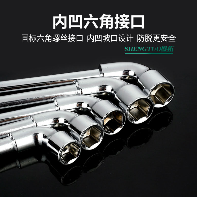 Double head sleeve elbow perforated wrench L type network vanadium steel 7-shaped tobacco bucket internal and external hexagonal plate hand 6-19mm