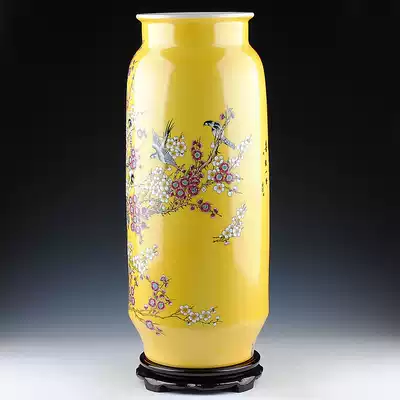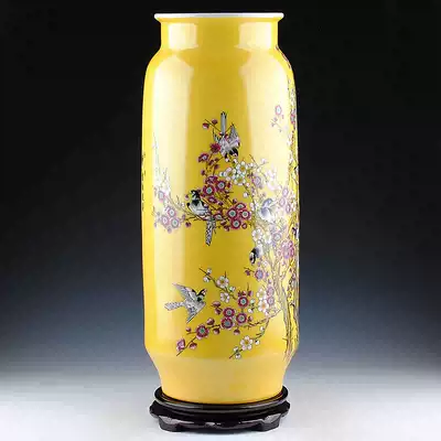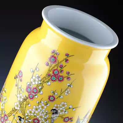 Jingdezhen Ceramic Pastel Yellow Eyebrow Vase Modern Home Decoration Living Room Crafts Decoration