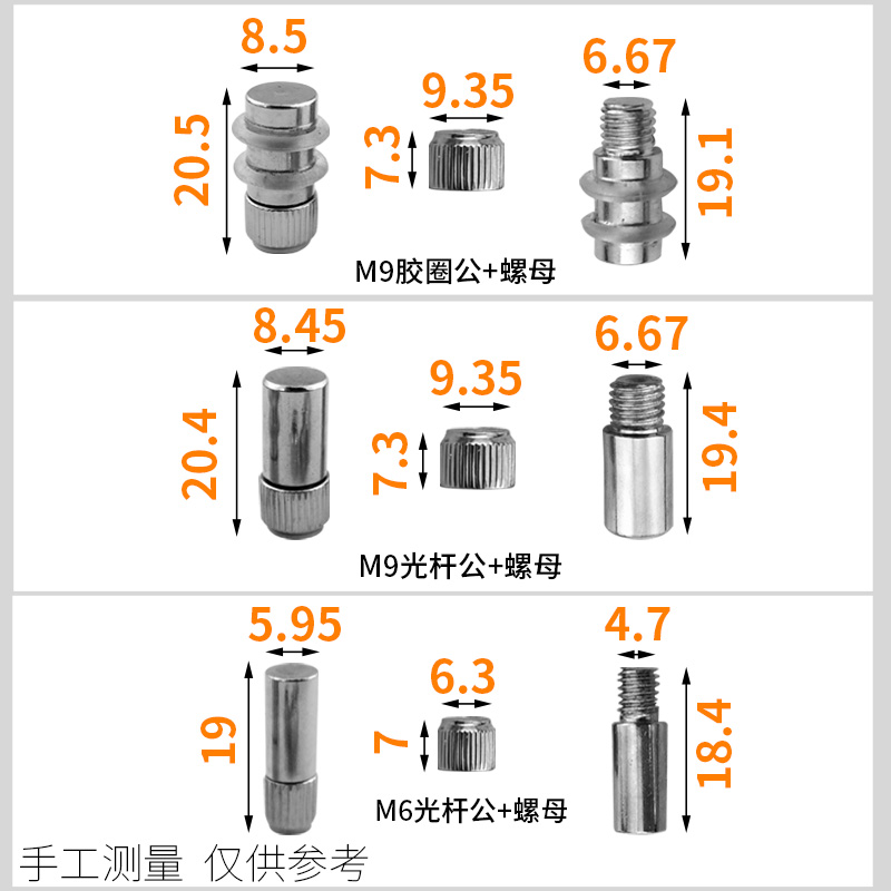M6 light-lever male nut (1 set) M9 light-lever male nut (1 set) M9 rubber ring male nut (1 set) M6 screw rod (small) M6 nut (small) M9 photopole (large) M