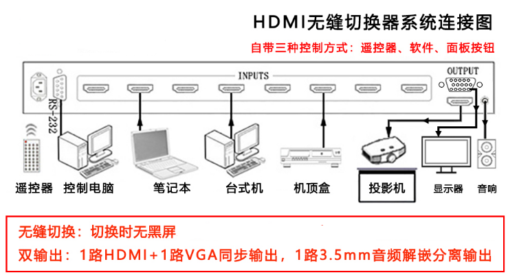 HDMI switcher 4-cut 1 seamless switching without black screen 4 in 1 out of support wheel tour 3 5 audio separation
