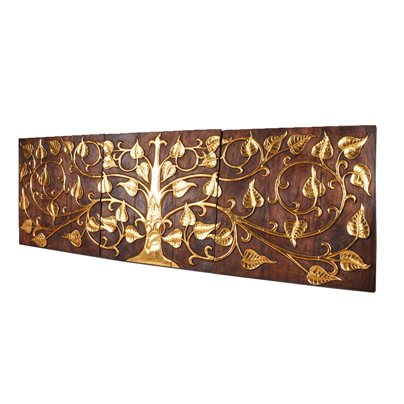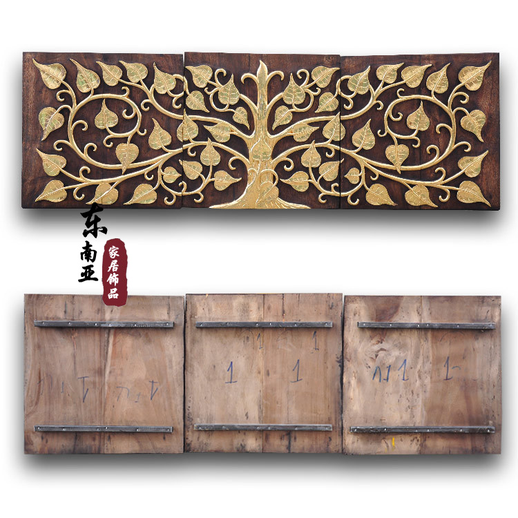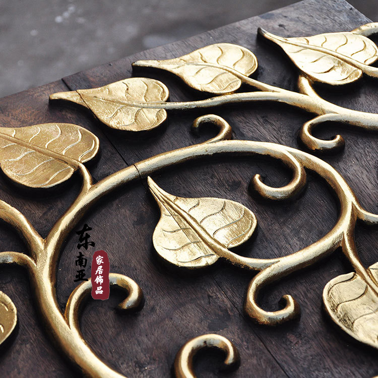 Thai Specialty Crafts Three Collared Bodice Leaf Teak Wood Carving Board Hotel Clubhouse Furniture Decoration Hanging Accessories Wall Painting Accessories