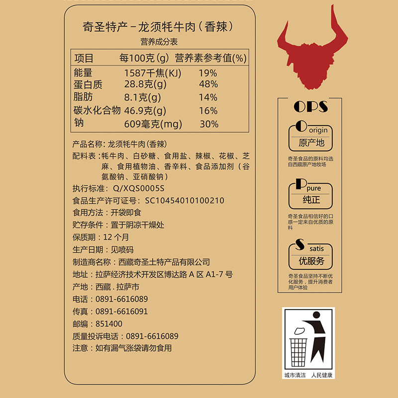 Qisheng Dengying Beef Shredded Tibetan Spicy Five Flavor Tibetan Sichuan Food Specialty Longbeard Yak Shredded Beef 106g