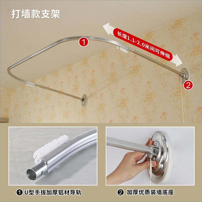 Wall-mounted U-shaped rail rail bracket fixed retractable mosquito net new 1 2 1 8m bed household 1 5m