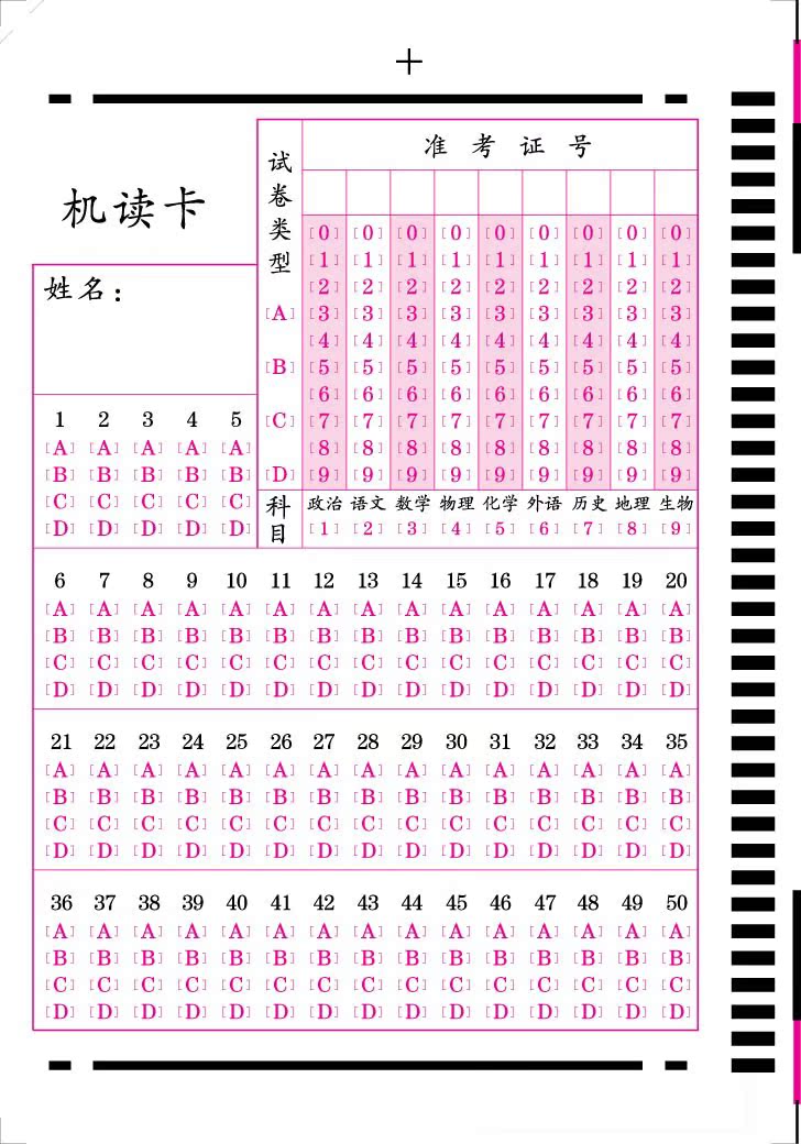 Standard machine reading card for primary school students, middle and high school school exams, general answer card, cursor reader, special 105-50
