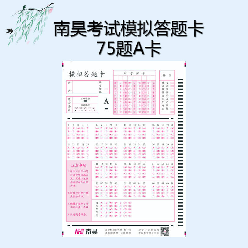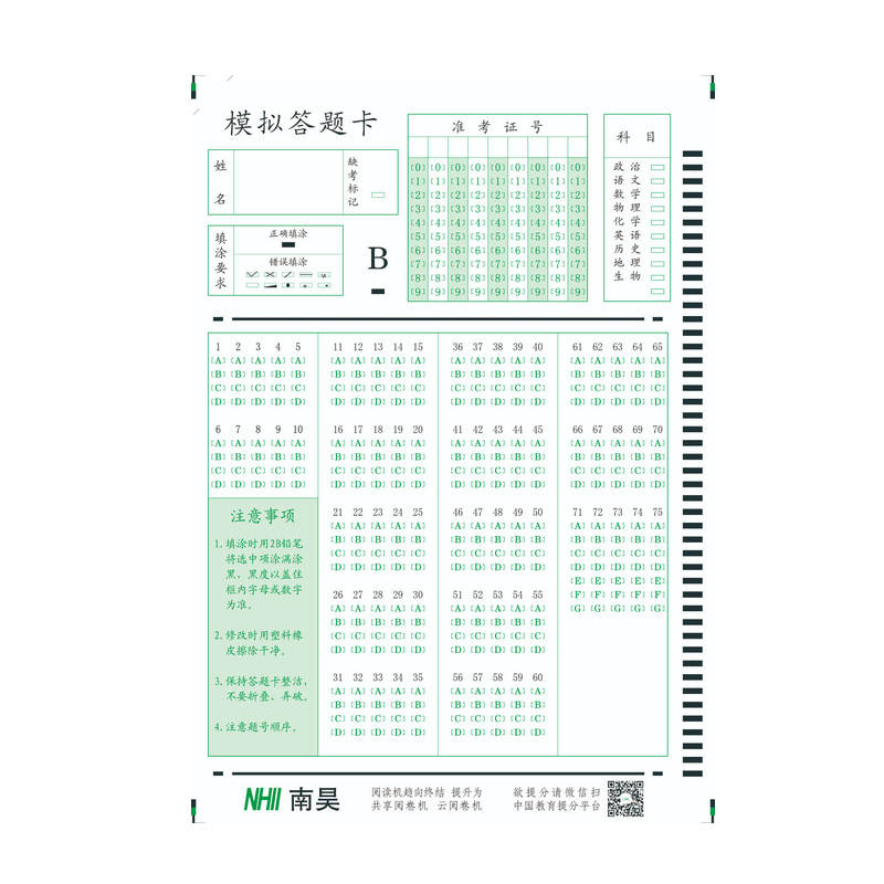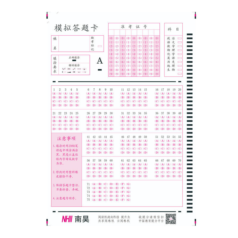 South Hao cursor reading machine answer questions card start high school mock examination answer machine reading ten thousand Zhang 75 questions 7 options-Taobao